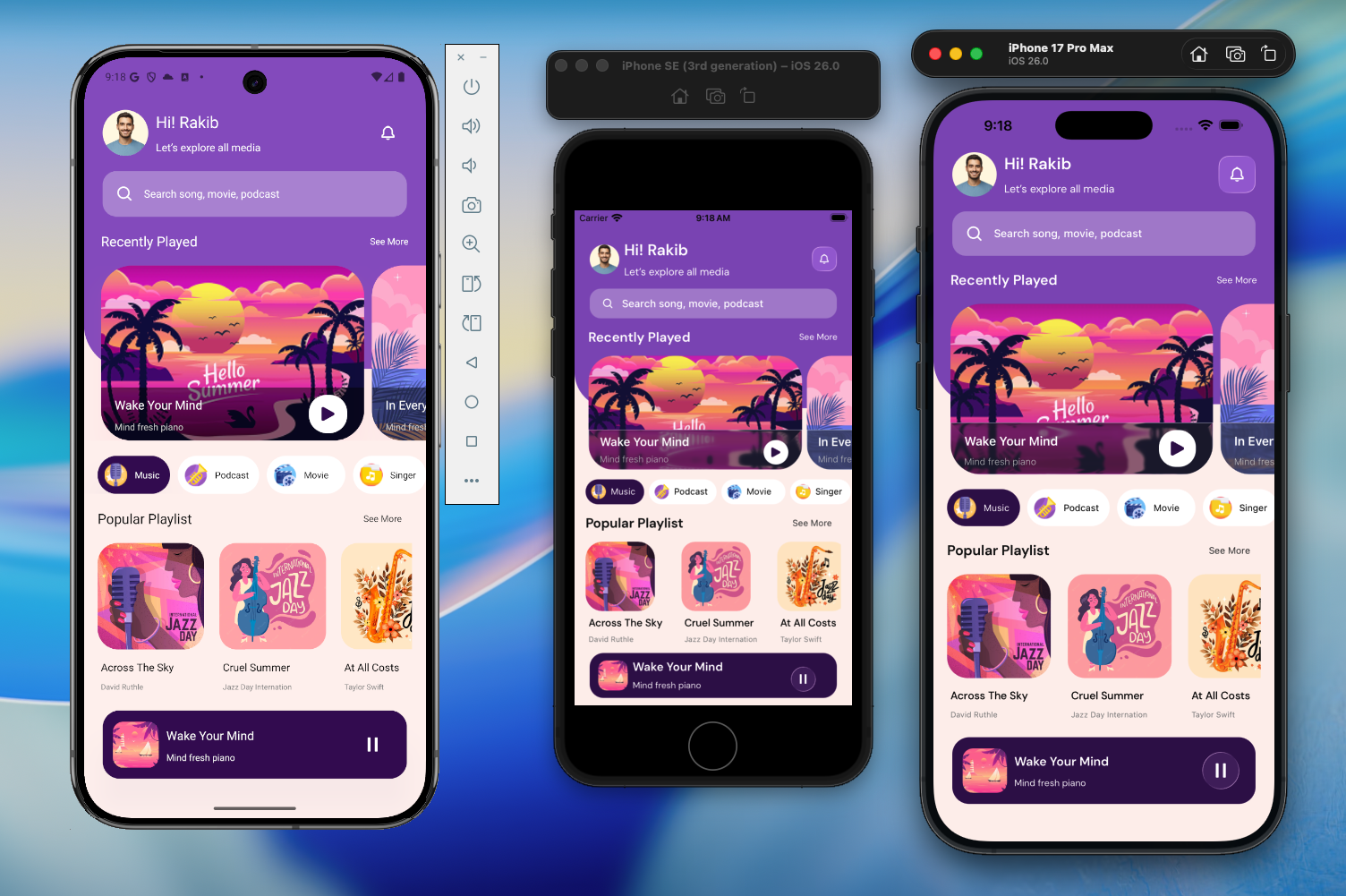 Use the same frame you designed with. Preview everything before generating code.